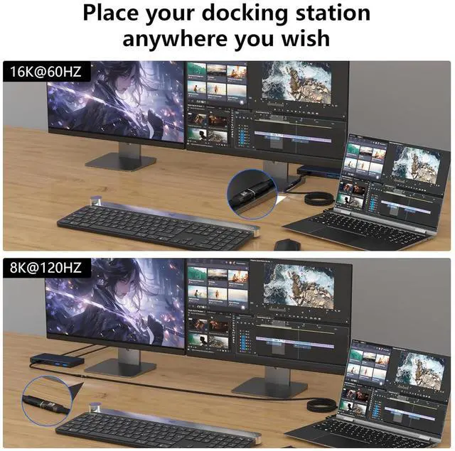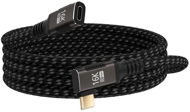 Ultra-Stable Coaxial Structure & 16K/8K HD Visuals This usb-c extension right angle cable combines military-grade coaxial stability with flexibility, plus 24K gold-plated contacts and triple-shielded cabling to block interference and ensure zero signal loss. As a reliable usb c extension cable, it supports single 16K@60Hz or single 8K@120Hz or dual 8K@60Hz output, delivering studio-grade color accuracy for professional video editing, 3D rendering, and immersive gaming.