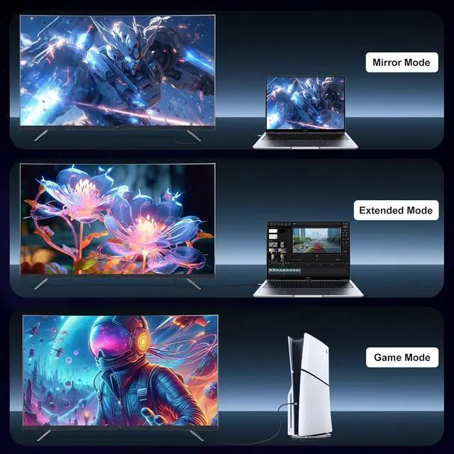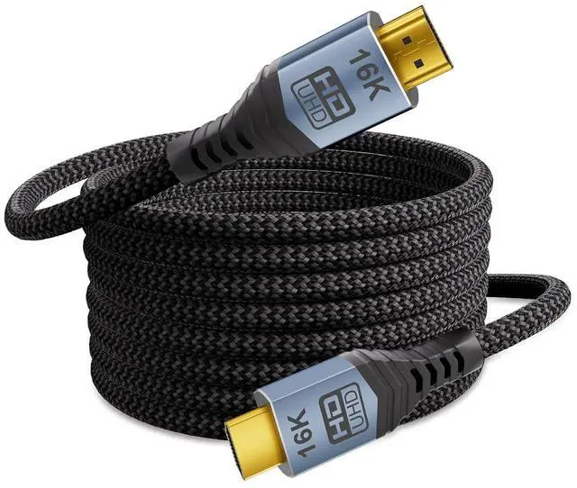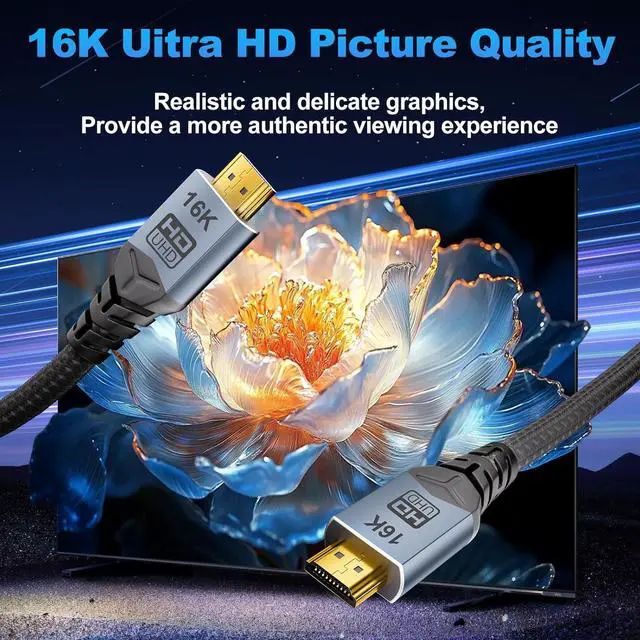 Built with Military-Grade Durability: This hdmi cable features triple-braided nylon, aluminum casing, and gold-plated connectors to withstand over 45,000 bends and resist EMI. Fully compatible with 4K/8K/16K TVs, gaming consoles, and next-gen PCs, offering backward compatibility with HDMI 2.1/2.0/1.4 for flexible integration.