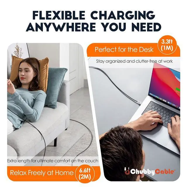 2-Pack Combo 3.3ft & 6.6ft for Home, Office & Travel: Includes two Type-C to Type-C cables in convenient lengths one 3.3ft short cable for portable charging and one 6.6ft long cable for extended use on sofas, beds, or desks. Perfect for users needing USB C charger cords for flexible setups at home or on the go
