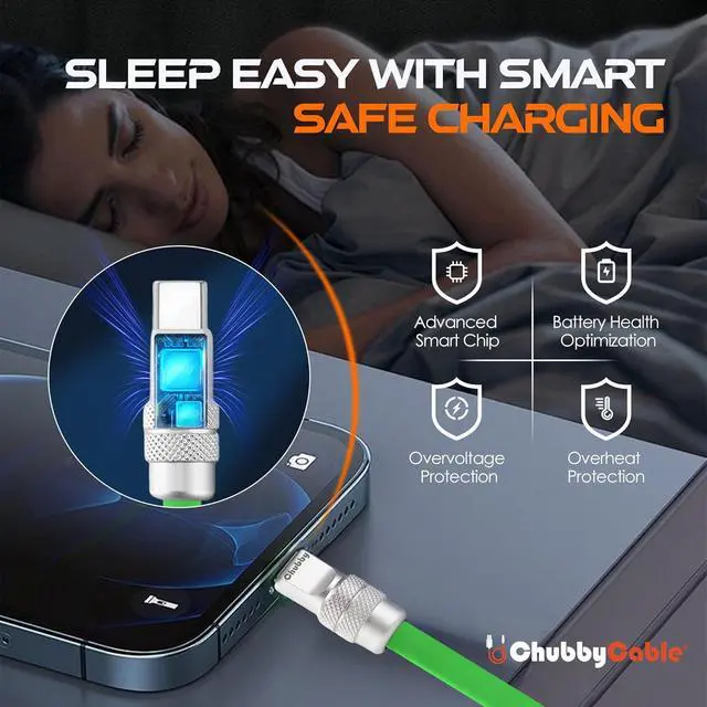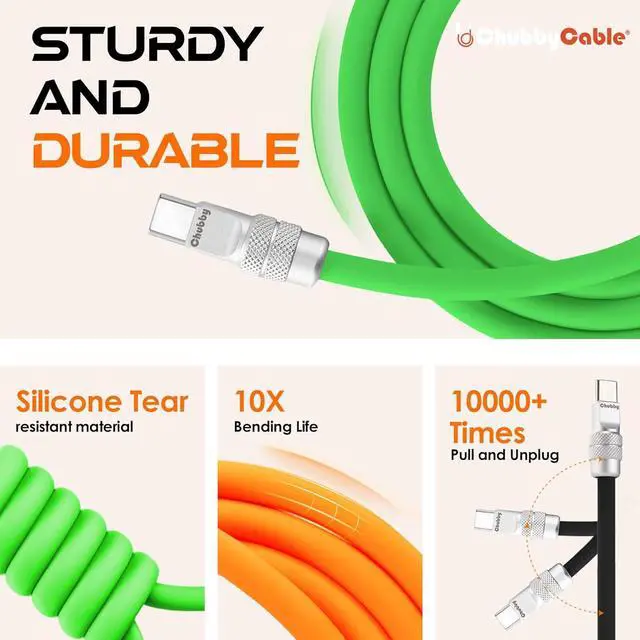 Durable 6mm Silicone Tangle-Free & Extra Tough: Crafted with ultra-soft liquid silicone and aluminum alloy connectors, this heavy-duty USB C cable resists fraying, dirt, and kinks. The extra-thick 6mm design ensures a strong grip and 40,000+ bend lifespan, making it ideal for daily use and frequent travel
