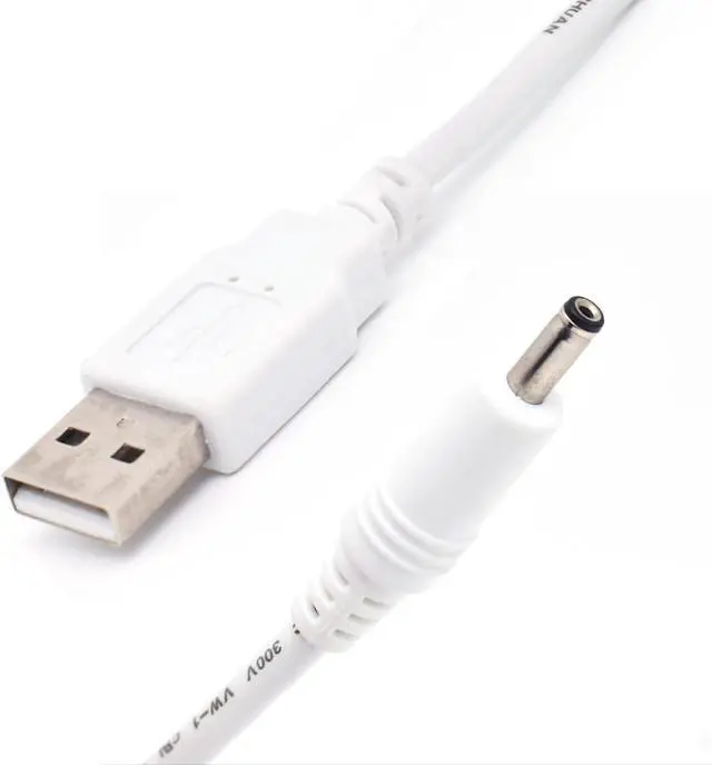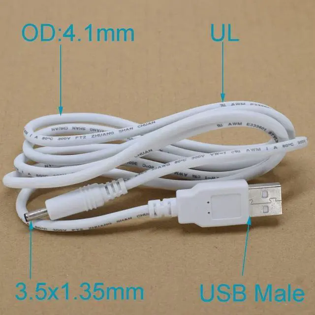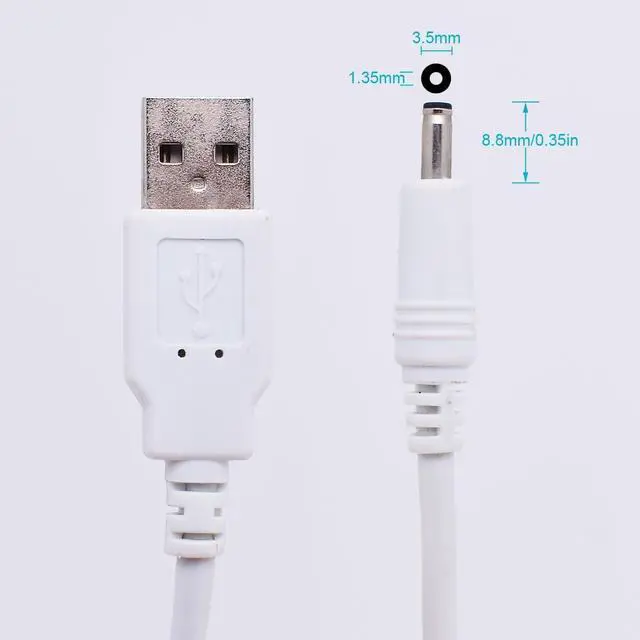 USB to DC 5V Power Cord Details: USB male plug to 3.5mm(outer), 1.35mm (inner) male coaxial/barrel plug. Cable length:4FT/1.2M20AWG, Charger only, can not used for data transfer