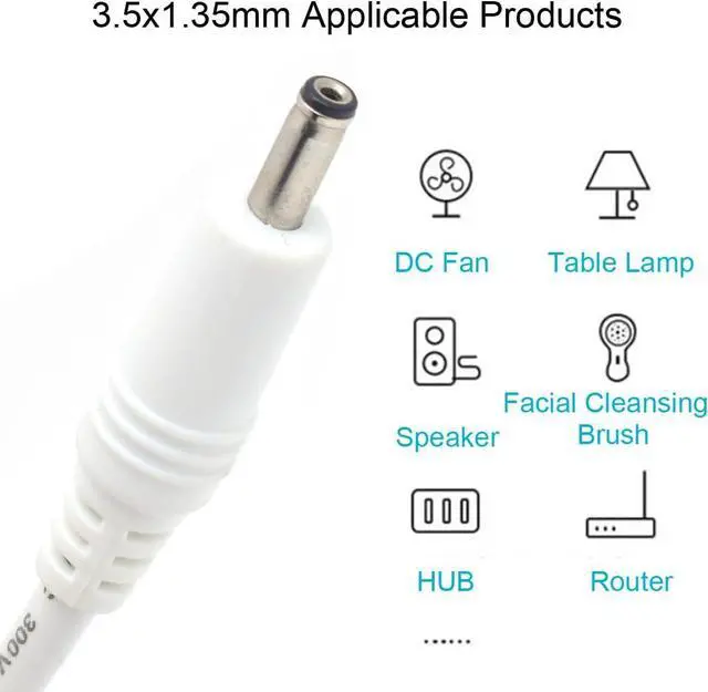 Package :Including 2pcs white usb male to 3.5mm x 1.35mm barrel connector 5v dc power cable,suitable for fans,cartoon watches,speaker