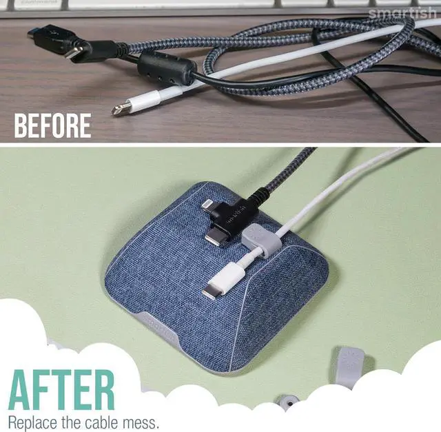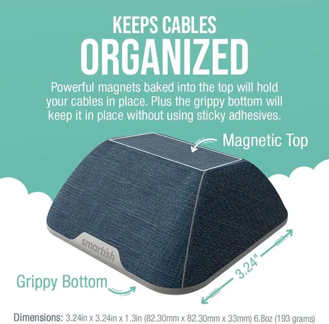 Keep Cables Organized - Never drop a cable behind your nightstand again and say goodbye to the frustration of untangling knotted cables. Cable Wrangler by Smartish uses a magnetic system to keep your cables organized and within easy reach. Simply hold the cable near the top of the Wrangler, and the magnet will securely grip it in place. No more wasted time wrestling with a tangled mess your cables will be neatly stored and ready to use whenever you need them.