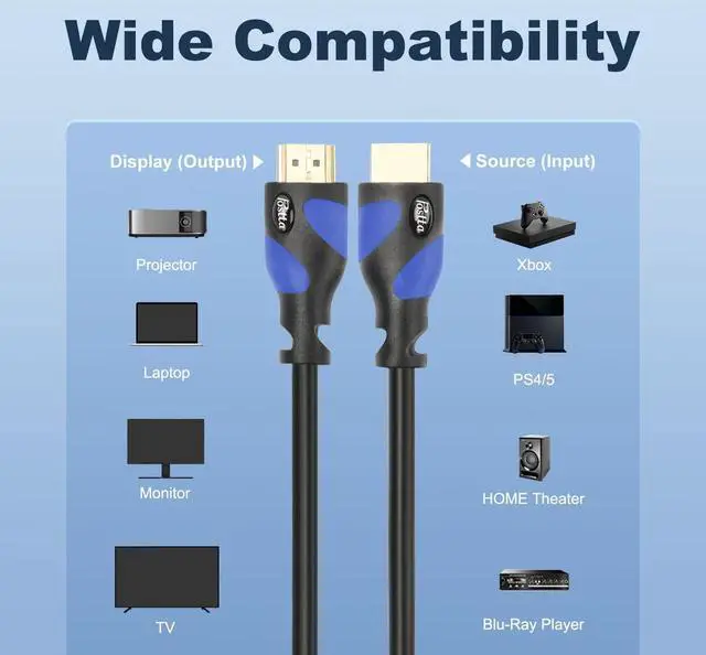 Fit Blu-Ray player,PS3,PS4,XBOX 360,DVD Player,3D TV's,Computer and more HDMI-compatible device.