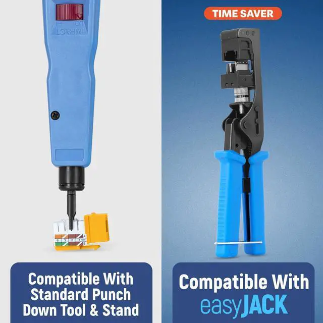 Wide Compatibility - The jacks can work in conjunction with a standard punch down tool and punch down stand for convenience. Its also compatible with our speed termination tool - easyJACK.
