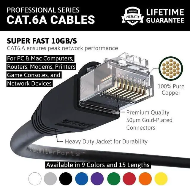 100 Ft Cat 6A Patch Cable Molded Black