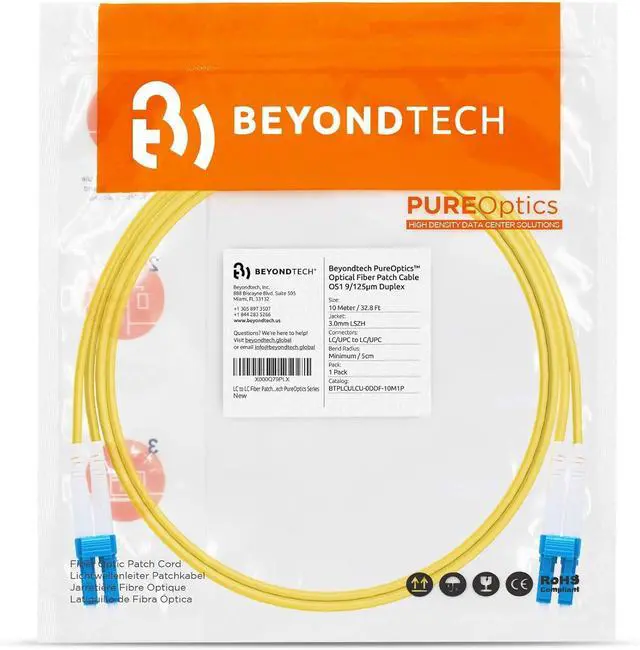 Beyondtech high-quality LC to LC Fiber Patch Cable Single mode 9/125 OS1 fiber is specially designed for fast Ethernet, Fiber Channel, Gigabit Ethernet Speeds, data center, premises, educational, LAN, SAN, commercial, 10GBASE-L (1310 nm), 10GBASE-E (1550 nm), 1000BASE-LX (1300 nm) and Asynchronous Transfer Mode (ATM) applications. It supports video, data and voice services.