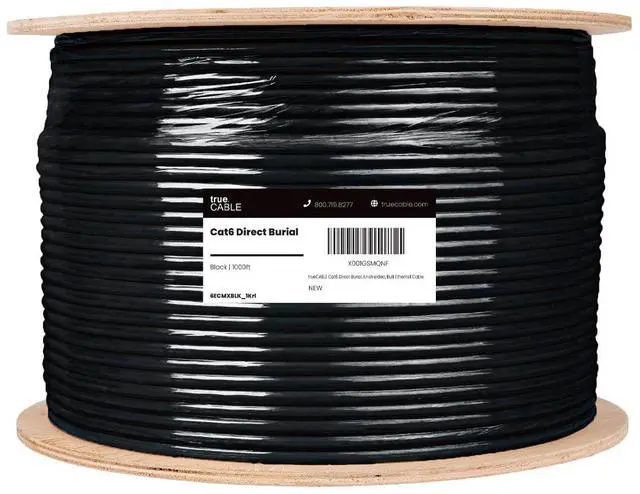 [Versatile] Direct burial outdoor Cat6 cable with UV-resistant, OSP jacket. Built to withstand sunlight, dirt, snow, and moisture. Install in the ground, conduit, or outdoors for home or business networks.