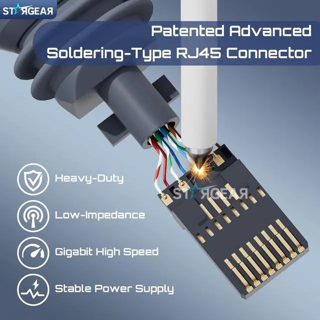 Starlink Replacement Cable Option: This Starlink cable gen 3 comes with patented advanced soldering-type RJ45 connectors, engineered for all-weather, heavy-duty use, reduce 50% contact resistance.
