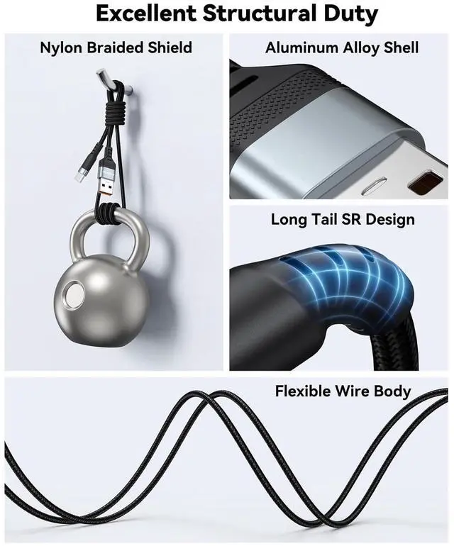 2026 Upgrade Durability: The usb to usb c cable 25ft used high quality aluminum alloy housing. Laser-welded stress points prevent fraying 3X stronger than standard cables. Long tail extension design for increased durability