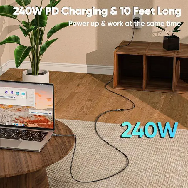 240W PD Fast Charging & 4K Video Output: The usb c male to usb c female up to 240W charging speed can quickly powering laptops, tablets, and smartphones. Also supports 4K@60Hz video output for clear, vivid display on monitors or TVs