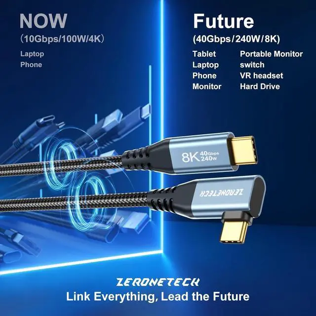 8K/5K/4K USB C Cable for MonitorsZeroneTeck USB C Monitor Cable supports 8K@60Hz, 5K@60Hz, 4K@144Hz video resolutions, allowing you to stream content from mobile phones, tablets and laptops directly to large screens such as monitors, HDTVs and projectors, enjoy stunning Ultra HD video and colourful picture quality.