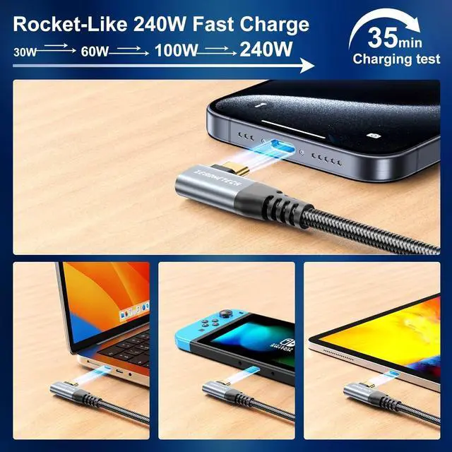 A Cable for LifeReinforced 90 degree end braided USBC-C cord cable with special SR joint, Lasts 20x longer than ordinary cables-proven in a ZeroneTeck laboratory environment to withstand 35000 bends. It built-in laser welding technology, which ensure the metal part won't break. 36 months after-sales serviceany problem will be solved within 24 hours.