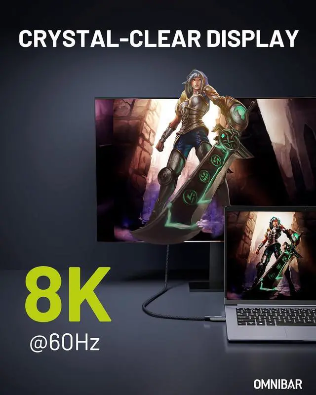 8K/4K UHD DISPLAY SUPPORT - Connect your laptop to an external monitor or display for crystal-clear visuals with resolutions up to 8K@60Hz, 4K@120Hz, or dual 4K@60Hz. Perfect for seamless screen mirroring, extended displays, and immersive viewing in creative, gaming, or professional setups. (Requires USB-C port with DP Alt Mode support.)