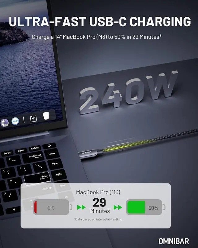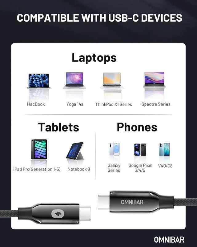 240W ULTRA-FAST CHARGING - The USB C charging cable supports up to 240W (48V/5A) of blazing-fast power delivery when used with a USB-C PD 3.1 EPR-compatible charger. Charge virtually all USBC devices, from cell phones and accessories to gaming consoles and laptops.