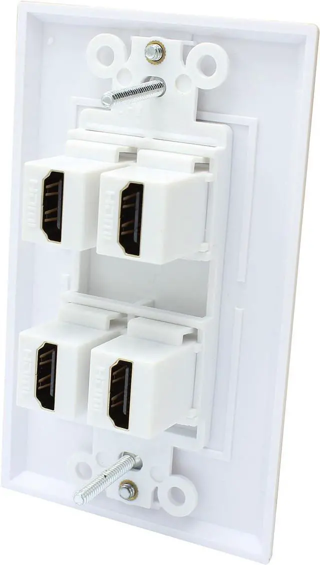 Tooless adapter connection.Female to female connectors. Just plug one cable into the front and one into the back. All standard sizes.Screws included. Keystone jacks are removable unlike competitor plates for future upgrades. Support HDMI 2.0, 4K, 3D.