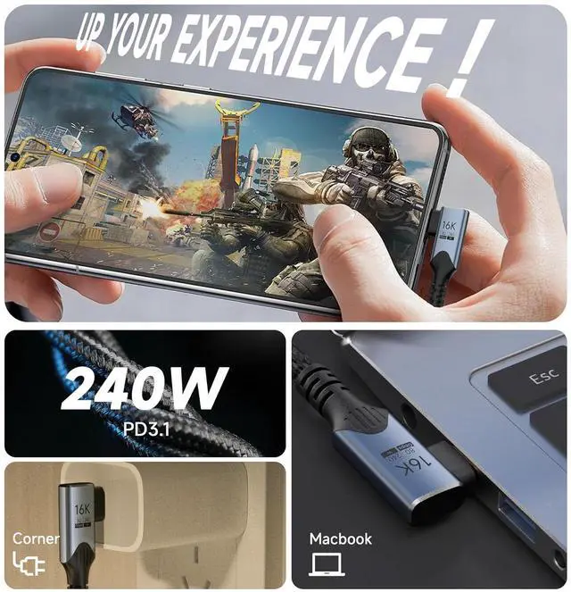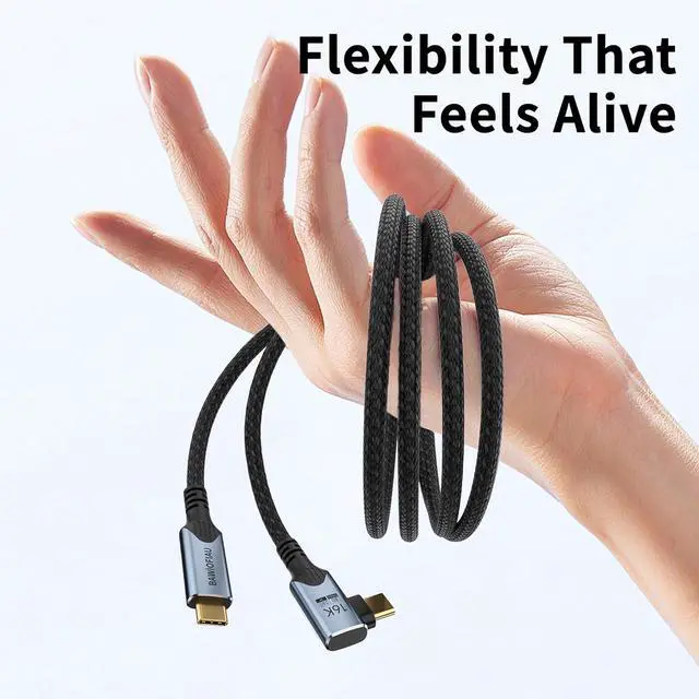 Mastery in Ultra-HD Display: 8K@120Hz or 16K@60Hz: This USB-C to C cable (an essential USB-C to USB-C cable) enhances images with 8K or 16K support. Whether used as a standard USB-C cable or a USB-C cable, graphic designers and editors achieve pixel-perfect clarityall from a single, versatile USB C to USB C cable.