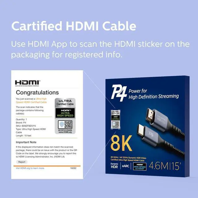 [ULTRA HIGH SPEED 48GBPS] Stop the flickering. P4 delivers a massive 48Gbps bandwidth. Experience true 8K@60Hz and 4K@120Hz without signal dropouts or lagessential for next-gen gaming and high-end cinema.