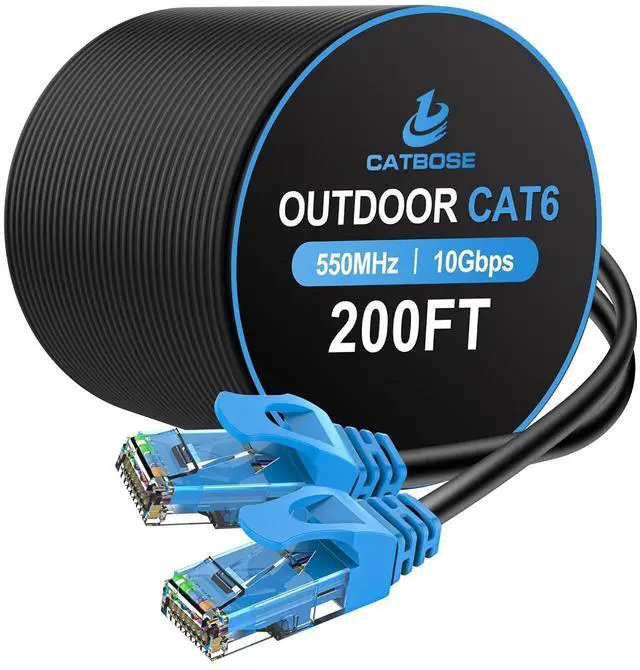Rugged and Durable: Our Cat 6 outdoor cable, which is 24AWG with 4 pairs of conductors and RJ45, utilizes 550Mhz to transfer data at a speed of up to 10Gbps, offering you the most stable signal and lower delay. Needless to say, it functions impeccably indoors