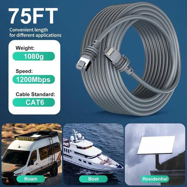 [ Stable & Speed Transmission ] The 75FT/23M for starlink cable incorporates cutting-edge RJ45 connectors and is crafted from premium 26AWG single-core copper. Its robust construction guarantees a stable network connection, supporting data transfer speeds of up to 2000Mbps for uninterrupted streaming.