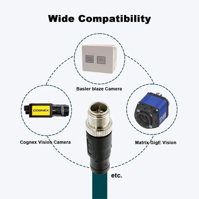 Wide Range of ApplicationsCompatible for Cognex In Sight 8200 8400 Series, Information and communication equipment, sensors, actuators, encoders, motors, industrial cameras. This Ethernet cable provides Ethernet connectivity and supplies power to the vision system.