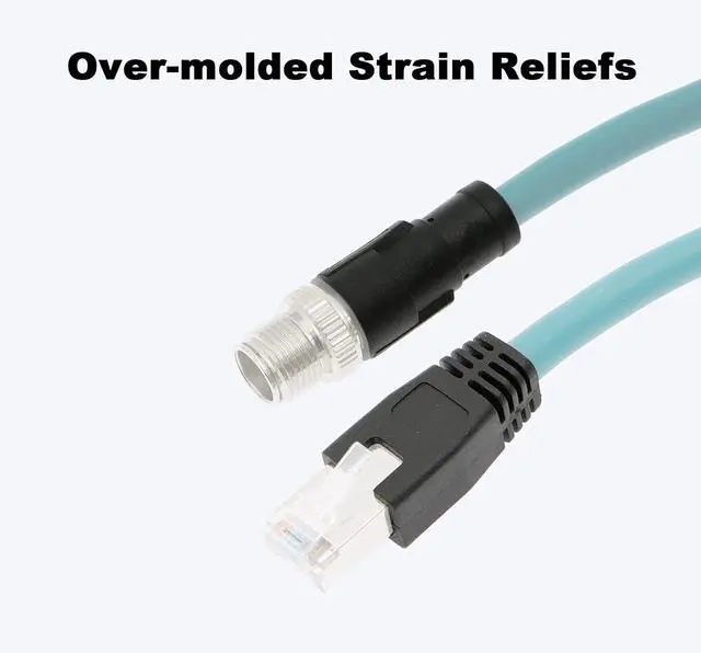 More DurableM12 connector are IP67 waterproof rating, protecting against liquids and particulate. Featuring shielded RJ45 Connector and over-molded strain reliefs on both connectors to protect against electrical interference. Highly flexible drag chain cable, abrasion and bending resistance.