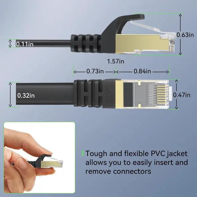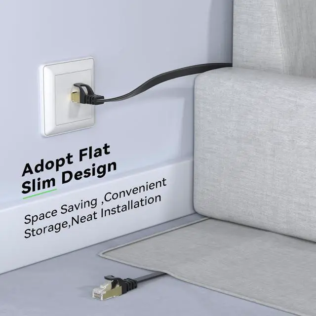 Flexible Flat Design : Slim Cat8 flat ethernet cable effectively avoids tangling and saves space . Flat lan cable is easy to pass through the carpet or door, hide or run along any surface