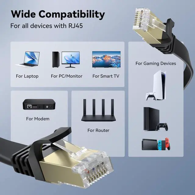 More Applications : Our Cat 8 network cable provide universal connectivity for any devices with RJ45 port, such as computer servers, routers and other gaming system, etc. Cat8 patch cable is backward compatible with Cat5, Cat5e, Cat6, Cat6a and Cat7 ethernet cable