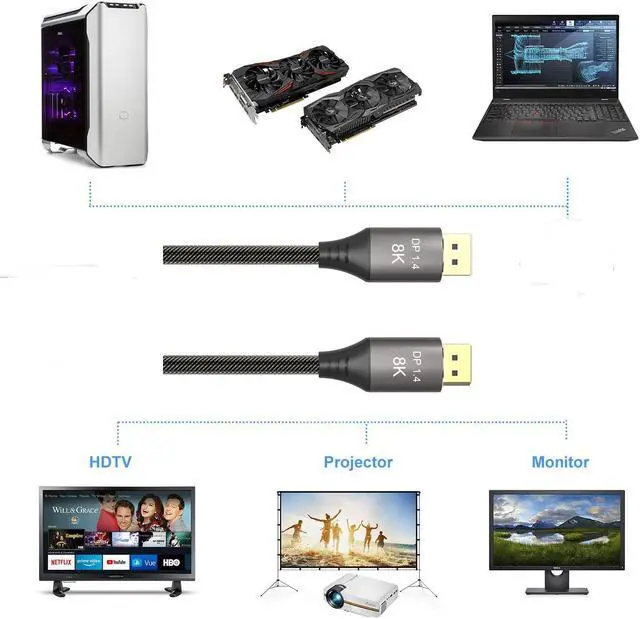 Wide Compatibility With Gaming Monitor: Compatible with Samsung, Dell, LG, HP, ASUS, Acer, Alienware gaming monitors. Supports DP, DP++, and DisplayPort++.It will be so great to use DisplayPort 1.4 cable to show your Cyberpunk 2077 gaming skill on RTX3080. Also compatible with graphics cards, like Radeon R9 290, Geforce GTX, HD Graphics 4600ASUS HD 7970 DCII