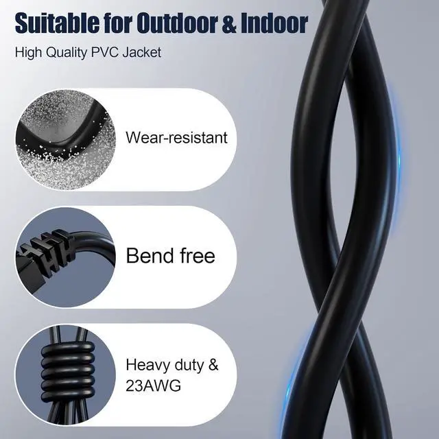Direct Burial Rated: Our cat 6 direct burial ethernet cable are made of durable sheath material, which allows them to be buried underground without the need for conduits or other auxiliary equipment, avoiding some of the drawbacks of ground wiring, such as unsightly lines and easy tripping.