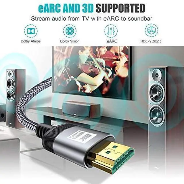 Dynamic HDR & eARC8K HDMI Cable supports HDR10, Variable Refresh Rate (VRR) ,Quick Frame Transport, Enhanced Audio Return Channel (eARC); enhance every moment values for depth, detail, brightness,compatible with all devices with HDMI type A port.