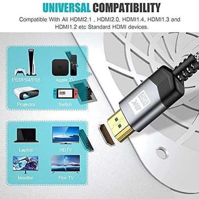 Compatible with all versions below HDMI 2.1]: 8K HDMI 2.1 cable conforms to the latest tested and certified version of HDMI 2.1, which is very suitable for all devices with HDMI 2.1 standard, and is backward compatible with previous HDMI 2.0, 1.4, 1.3, 1.2 and 1.1.