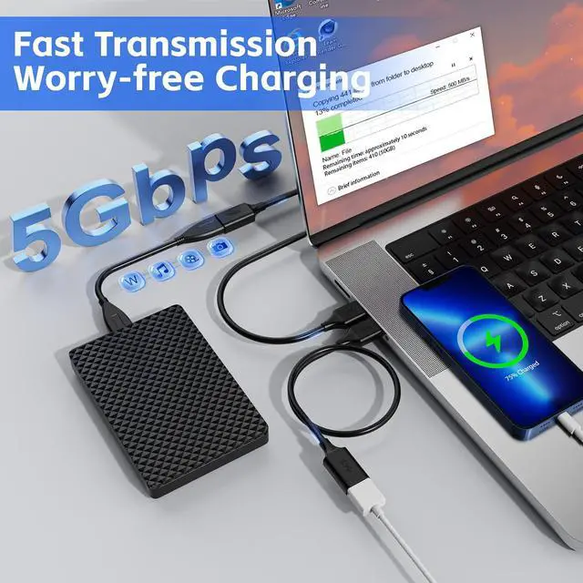 High-speed Data Transfer: Supports high-speed data transfer rates of up to 5Gbps - 10 times faster than usb 2.0 (480 Mbps), which allows you to transfer HD movies or files in seconds when your host is equipped with a usb 3.0 port. It is also backward compatible with USB 2.0, 1.1 and 1.0. Plug and play on universal system, no driver required