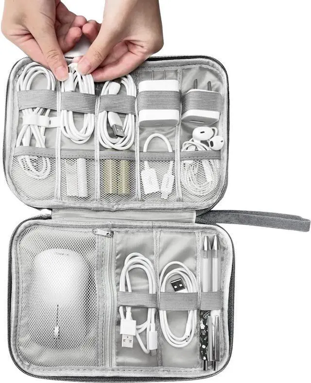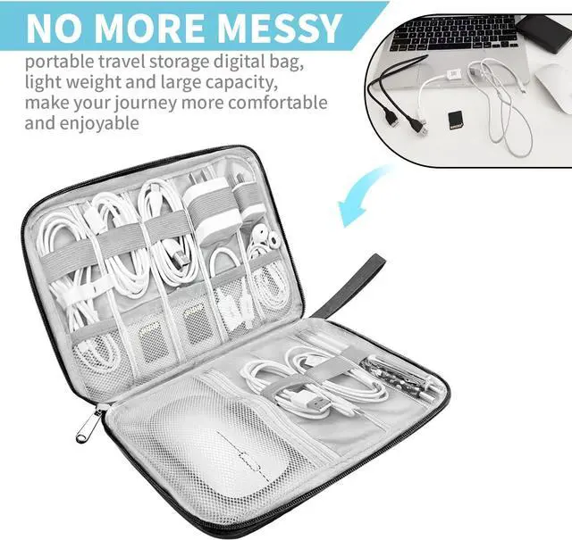 Thoughtful Design:To solve the messy data lines,our data cable storage bag can great help deal with this bad situation.Different compartments can help you keep your smart digital accessories well organized,including mobile cables,SD cards,cords,chargers