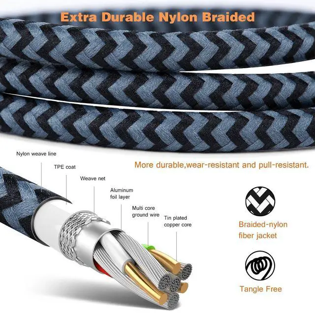 Tangle-free Nylon Braided USB Cable with aluminum connector has a 8000+ bending lifespan, much stronger than the normal cables.