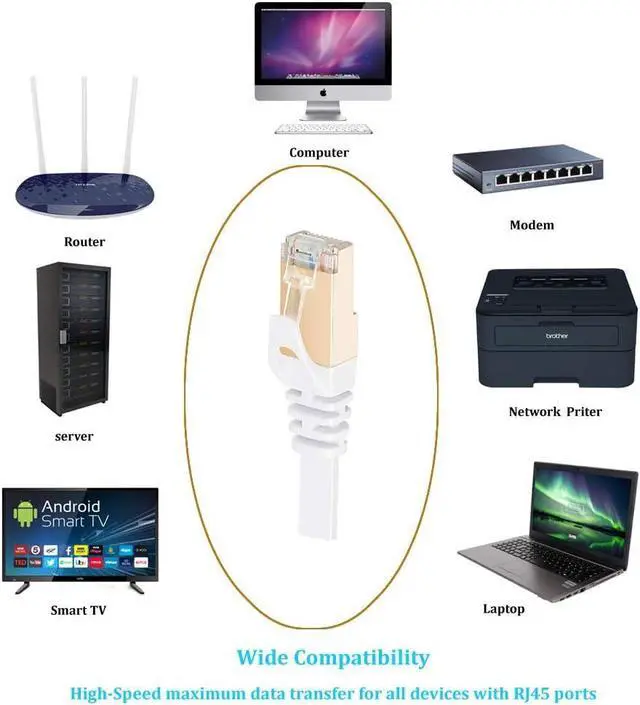 Backwards compatible with CAT5, CAT5e, CAT6, and CAT6a equipment; Perfect for Laptop, Router, Modem, Switch, Hub, DSL and network attached storage devices, Xbox, PS2, PS3, PS4 and game boxes with RJ45 ports.