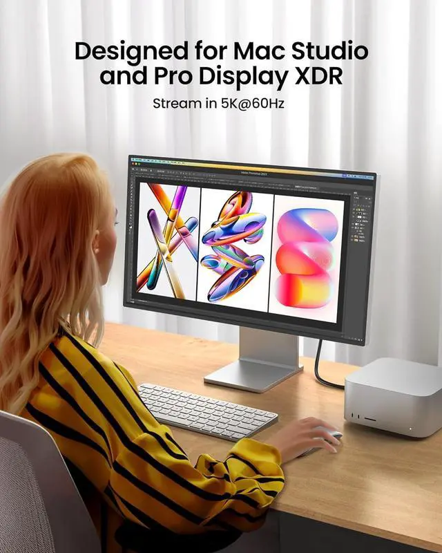 8K/5K/4K for USB C MonitorsSupports single 8K@60Hz, 5K@60Hz, or 4K@144Hz, and dual 4K@60Hz with HDR for professional color accuracy. Boost efficiency with MST Daisy Chain. (Note: Requires DP Alt Mode support on devices)