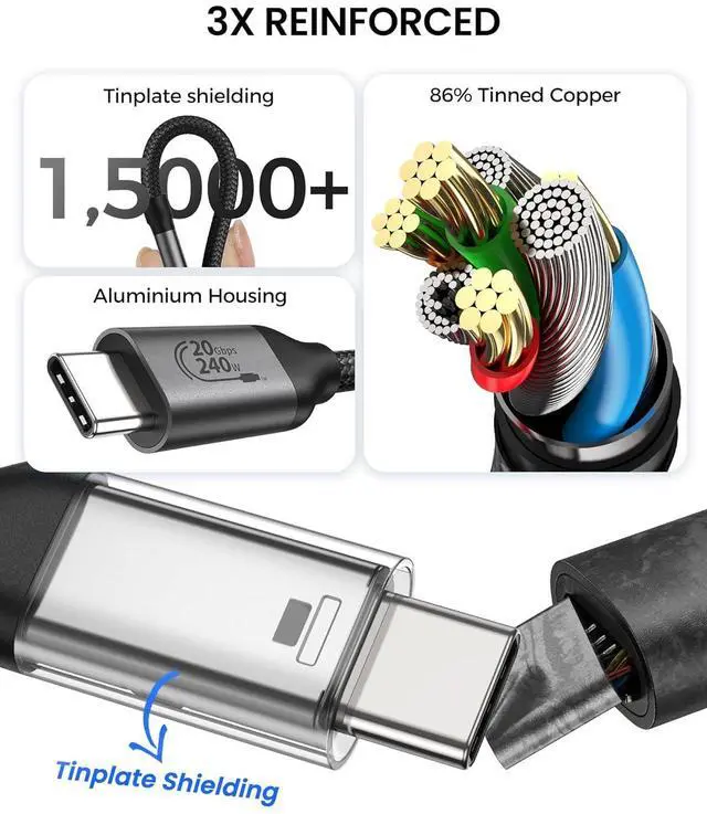 240W PD 3.1 ChargingSupports PD 3.1, QC 4.0, FCP, and AFC. Up to 240W (48V/5A) with a compatible charger. Backward compatible with 180W, 140W, 100W, 80W and lower. Work with MacBook/iPad, iPhone 17/16, Samsung Galaxy S21 series and more. (NOTE: ONLY compatible with cases UNDER 1.5mm thick)