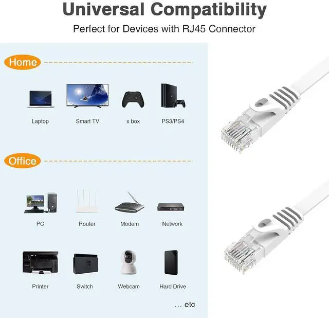 Connects Multiple Devices: Cat6 Ethernet Cable provides universal connectivity for LAN network components such as PCs, computer servers, printers, routers, switch boxes, network media players, NAS, VoIP phones, POE devices, and more