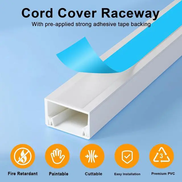 ORGANIZE CABLE NEATLY: Use wire hiders for cable management to refresh home and office. Whether it's hiding wall mount TV powers cords or managing mess wires, our wire covers for cords always offer tailored solutions. Note: The self-adhesive backing is high adhesive strength, we are suggested that plan placement carefully before installing to prevent potential wall damage upon tape removal for re-installation