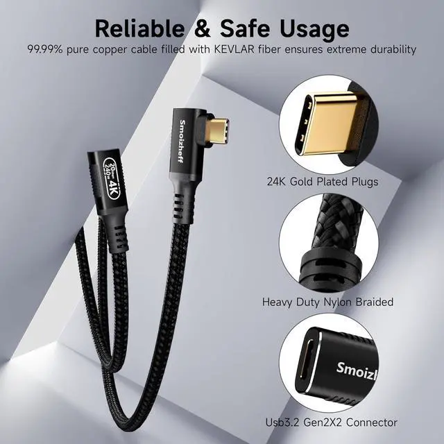 The Space-Saving 90° Advantage This isn't just another cable. The right-angled connector is engineered to protect your device's port from accidental bends and impacts. It seamlessly tucks behind your laptop, monitor, or docking station, creating a sleek, clutter-free setup and eliminating the "lever effect" that can permanently damage your expensive electronics. Perfect for tight spaces and on-the-go use.