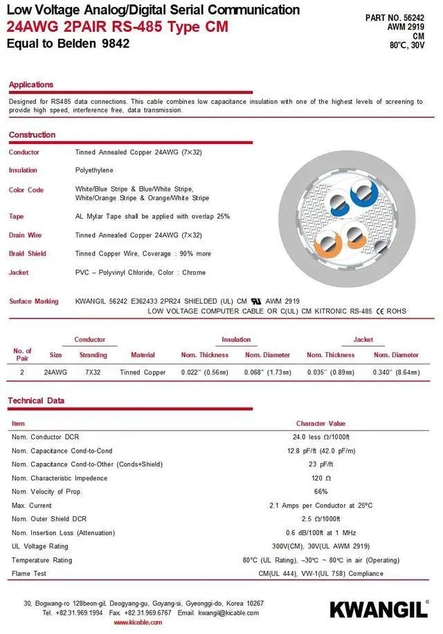 MADE IN KOREA: Since 1984, KWANGIL has been a successful manufacturer of wire and cable products in Korea. KWANGIL has provided the industrial, robotics, factory automation, aerospace, shipbuilding, transportation, telecommunications, and medical industries, as well as distributors, the government, manufacturers and military with all their cable products.