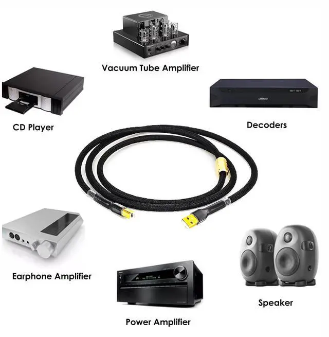 Crafted to fit both A and B USB ports, the hifi USB cable 24K Gold Plated is perfect for audio and video transmission on a variety of devices.