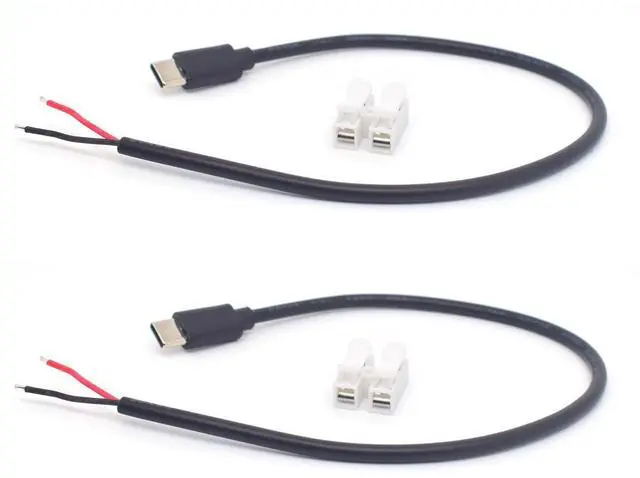 USB C Pigtail 2 Wire Features:USB-c plug to 2 pin bare wire length is 0.3M/1ft ,cable 22Awg, white positive electrode, black negative electrode, easy to operate, rated voltage: 5V-12V, maximum current: 3A