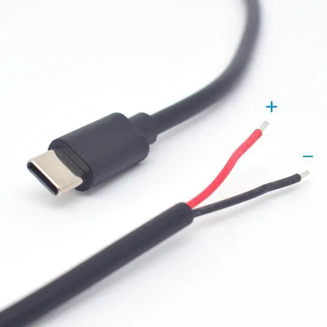 22awg USB C Male Plug 2Pin Bare Wire: USB type-c cable wire has one end of usb c type-c male plug cable pigtail socket and the other end of 2 pin bare wire.One black and one redVery suitable for DIY cable