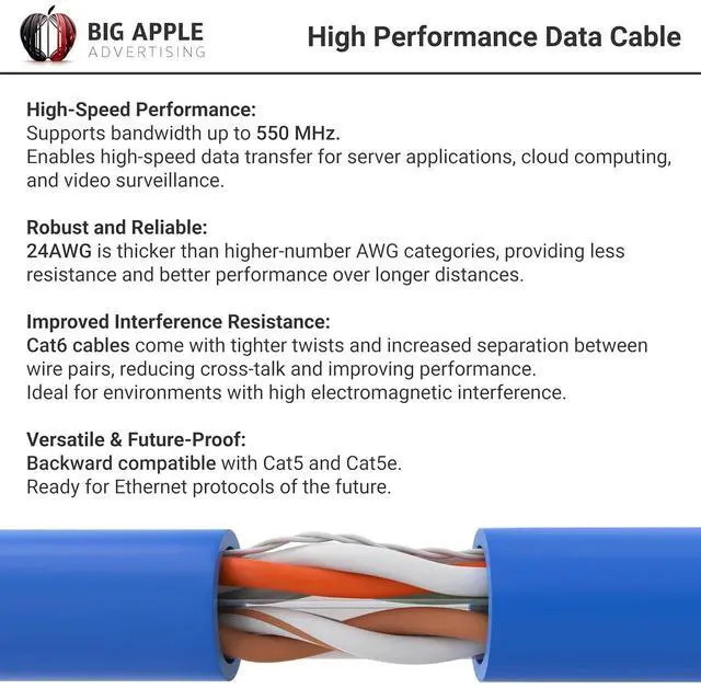 Cat6 Ethernet Cable 1000 feet is ideal for a wide range of networking applications, from home or office network installations