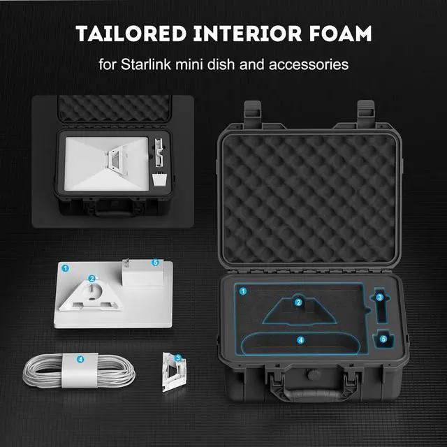 Custom-Fit Interior with Shock-Resistant Foam: The interior features custom-cut foam compartments designed to securely cradle your Starlink Mini dish and accessories. This shock-resistant foam provides exceptional protection during accidental drops, keeping everything safe and organized.
