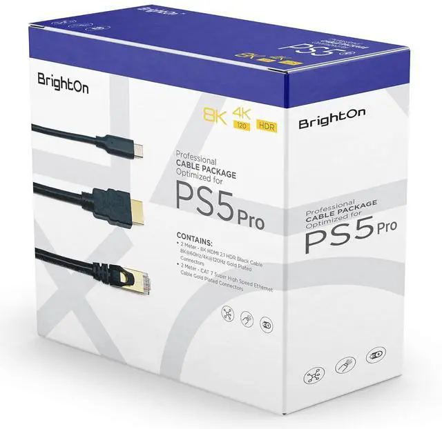 Achieve optimized connections between your network, your display and your controllers with the BrightOn optimized cable set for your new PS5 controller. Your gaming experience can be greatly improved with a professional cable package from BrightOn specifically designed for your console.