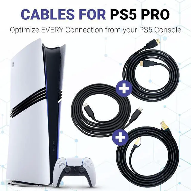 BrightOn Optimized Cable Package Compatible with PS5. Contains 3 cables. Each cable has a length of 2 meters.