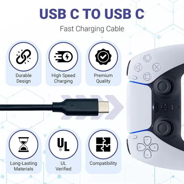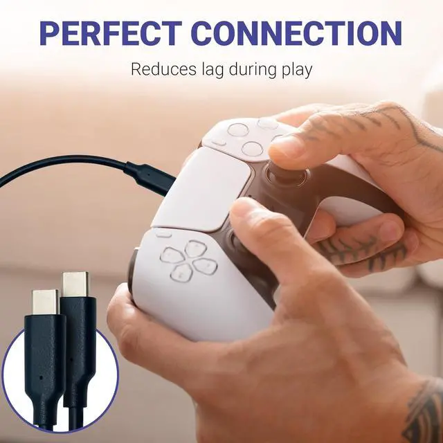 Fast Charge Black Cable (USB C to USB C). Decreased latency to optimize your gaming experience, every spare microsecond counts when gaming! PLEASE NOTE: PS5 PRO charges via USB-C (included). The regular PS5 uses USB-A order instead our regular PS5 set for the correct cable.
